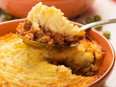 - Cubre el guiso con el puré y espolvorea el queso parmesano por encima