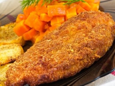 Pasa los filetes primero por la mezcla de huevo y luego cúbrelos con el pan molido